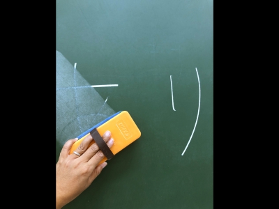 チョークで字を書くための黒や緑の板。学校の教室等に設置されている。小学校等では先生が黒板に書いたことを生徒はノートに書き写すことが多い。