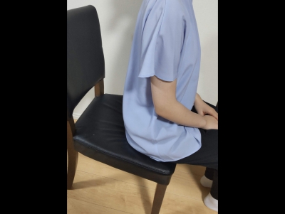 いすの前の方に座ること。姿勢が安定しない。食事の時はいすに深く座り、足を床につけ、安定した姿勢にする。