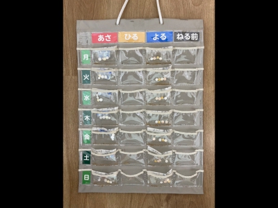 薬の飲み忘れや飲み間違いがないように、薬が入るポケットがついたカレンダー。本人や家族や介護者が、薬を飲んだかどうかを確認できる。